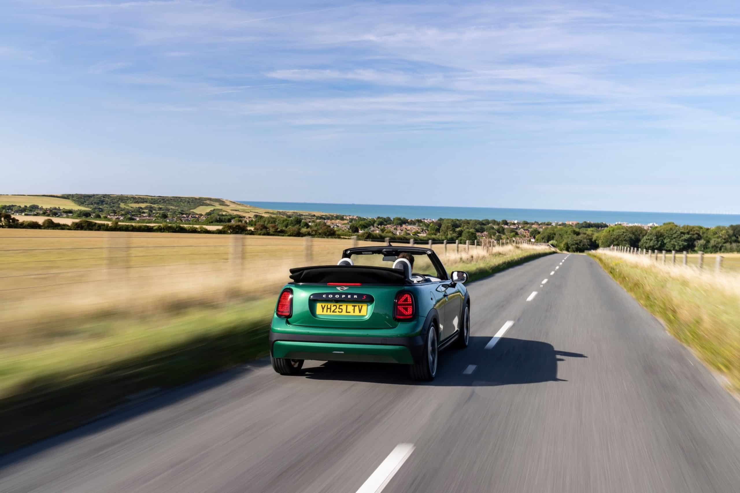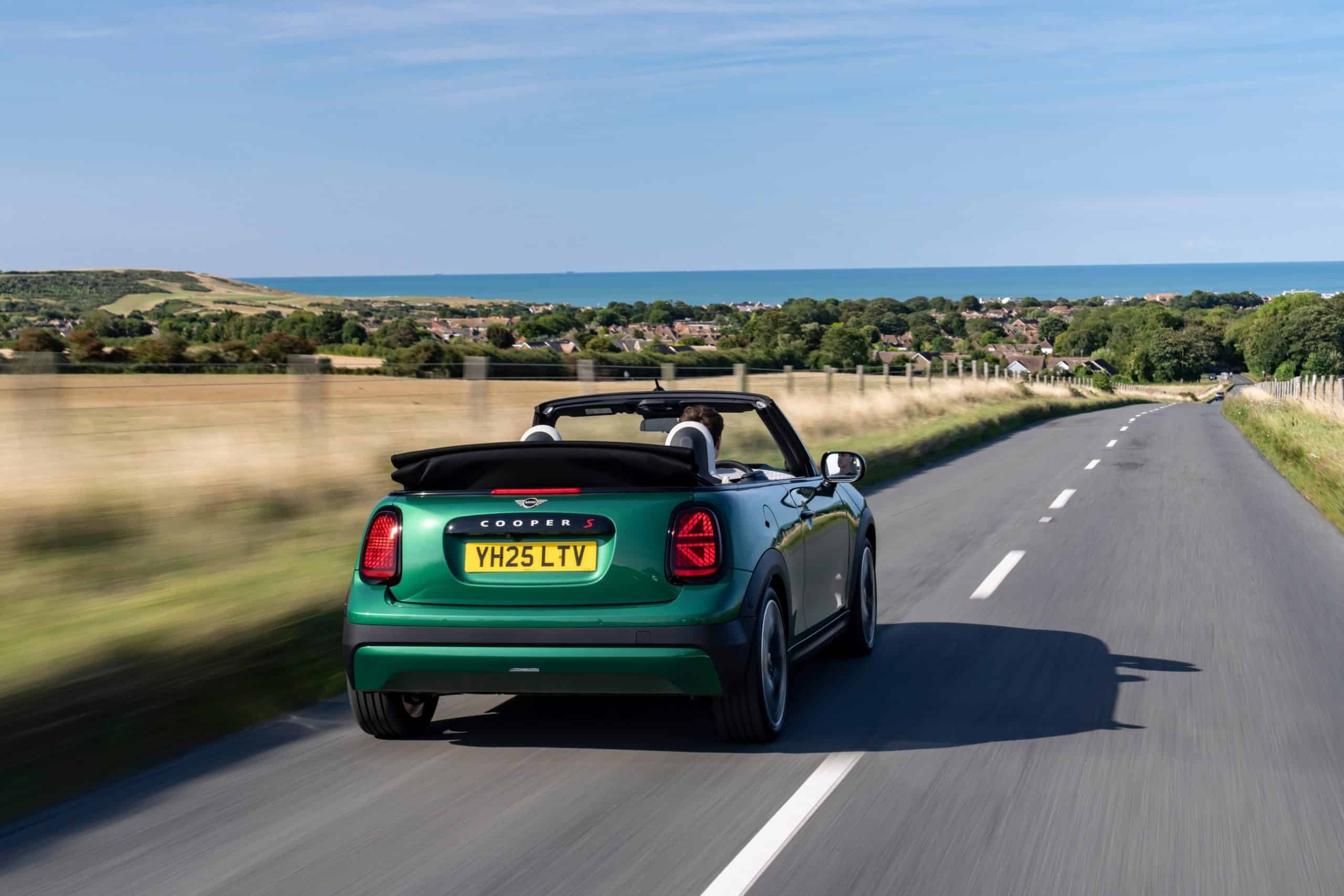 Fresh images taken along England’s southern coast show the Cooper S Convertible in an especially attractive spec. Photographed between Portsmouth and Dover, the diminutive cabrio looks right at home in British Racing Green, the perfect color for its seaside backdrop. MINI chose a stylish set of 18-inch, two-tone Slide Spoke wheels to complete the look.