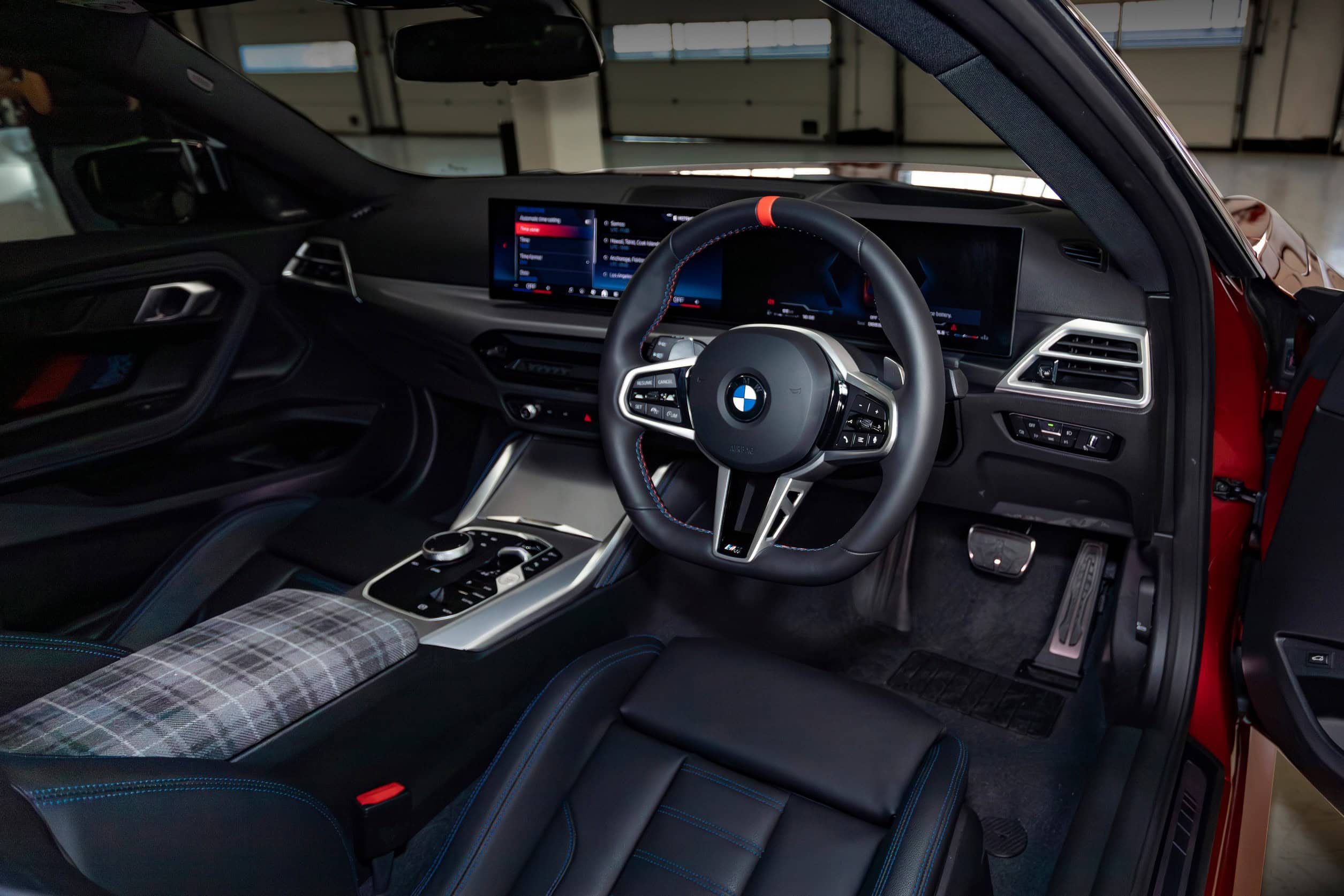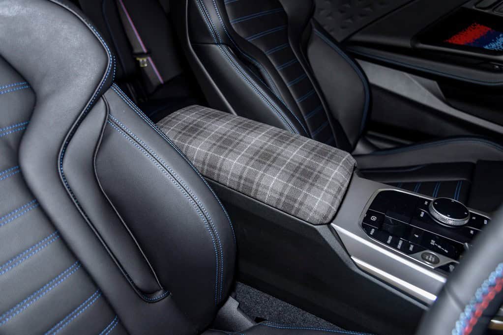 BMW South Africa enhances the all-wheel-drive coupe further with the M Sport Pro Package and a carbon fiber front splitter. Buyers can choose the Fire Red paint shown here or opt for Skyscraper Grey, Sapphire Black, or Mineral White. Inside, the nostalgic theme continues with an armrest wrapped in Ăśberkaro tartan. It’s a subtle nod to the Anthracite cloth upholstery of the original 325iS. A commemorative plaque completes the transformation.