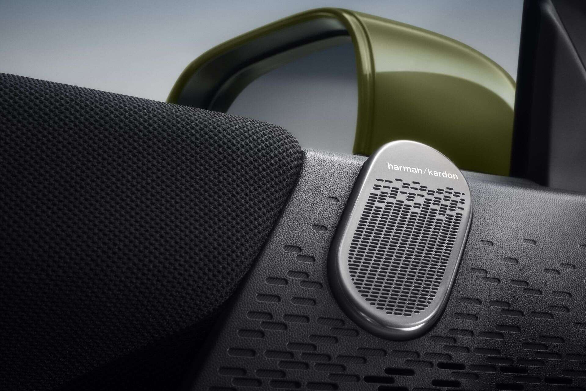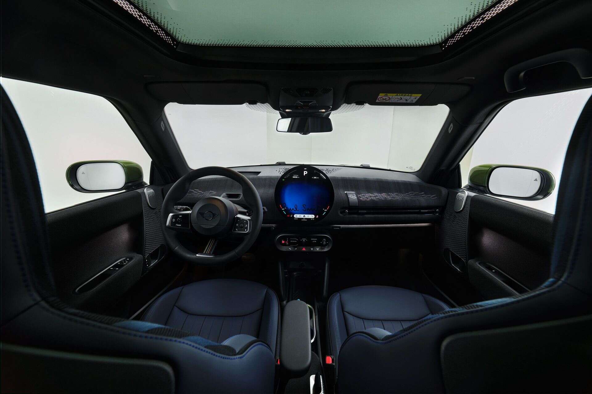 The roof, finished in Nottingham Green to honor Paul Smith’s hometown, is mirrored on the side mirror caps, wheel center caps, and the grille’s outline. Buyers can also opt for a darker roof featuring multiple stripes in varying shades of matte and glossy Jet Black.