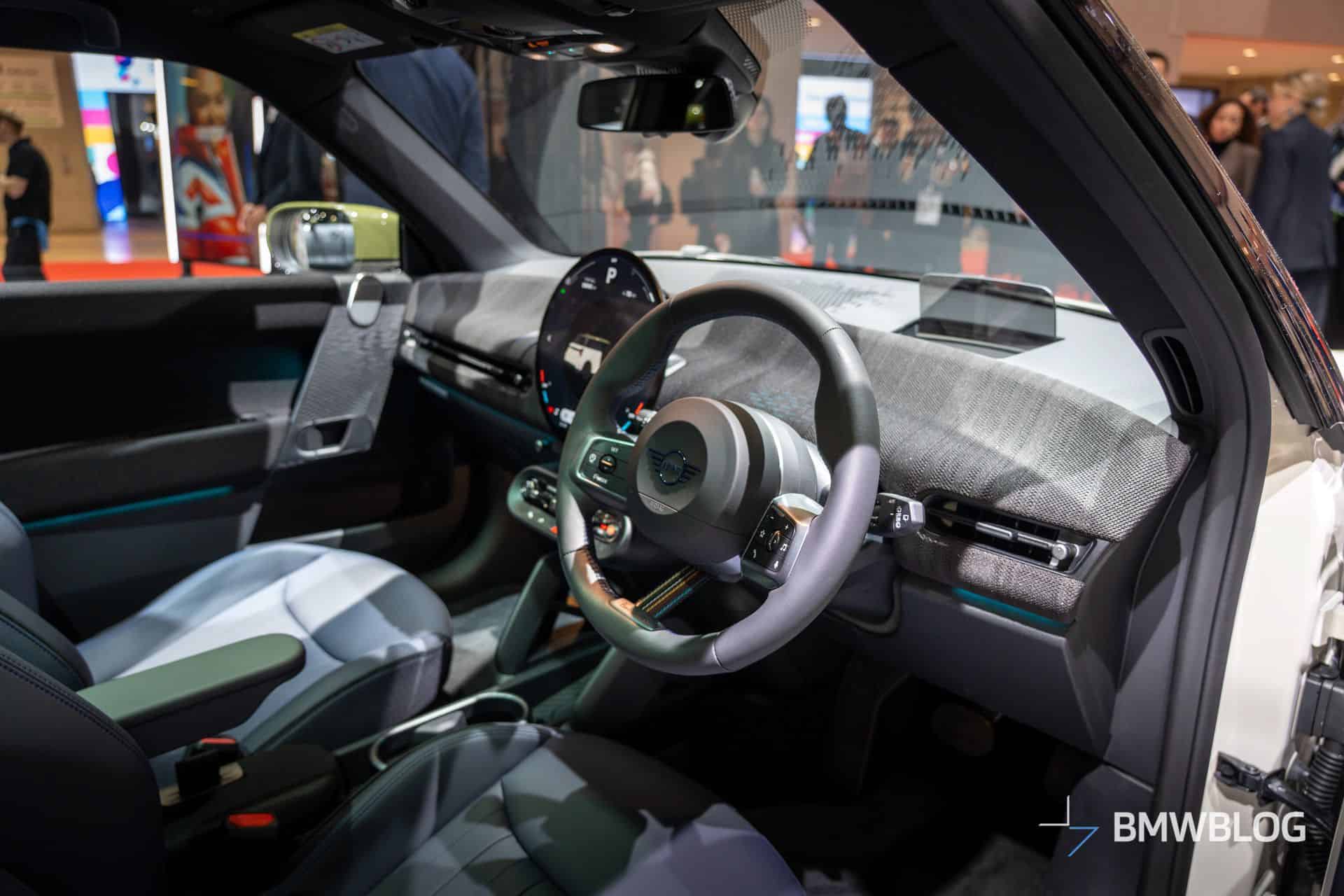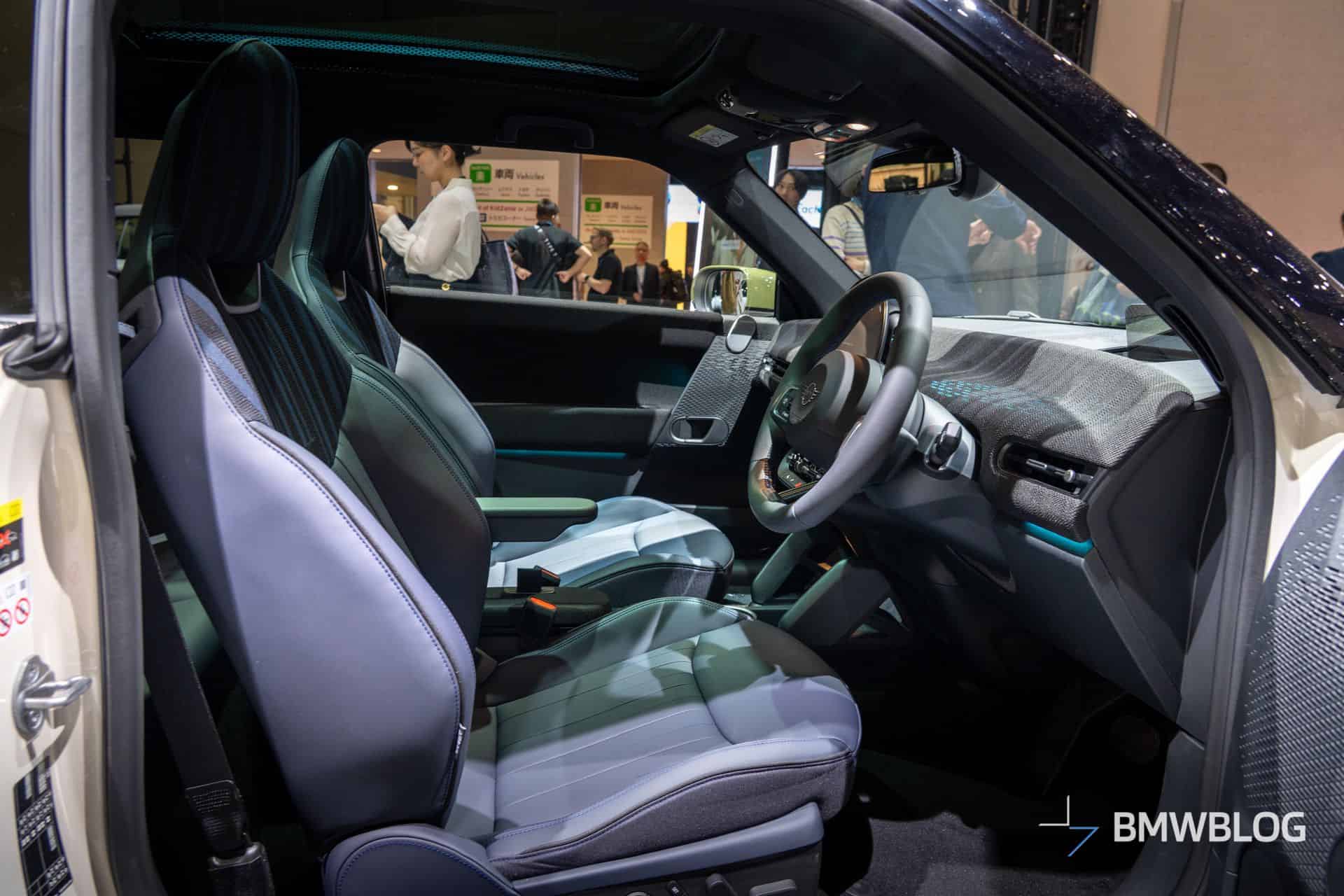 MINI brought both left- and right-hand-drive versions of the Paul Smith Edition to Tokyo, each featuring knitted surfaces across the door panels and dashboard. The sports seats are upholstered in artificial leather finished in Nightshade Blue, complemented by knitted textile inserts. A highlight is the steering wheel’s bottom spoke, wrapped in colorful fabric that echoes the recurring stripe theme.