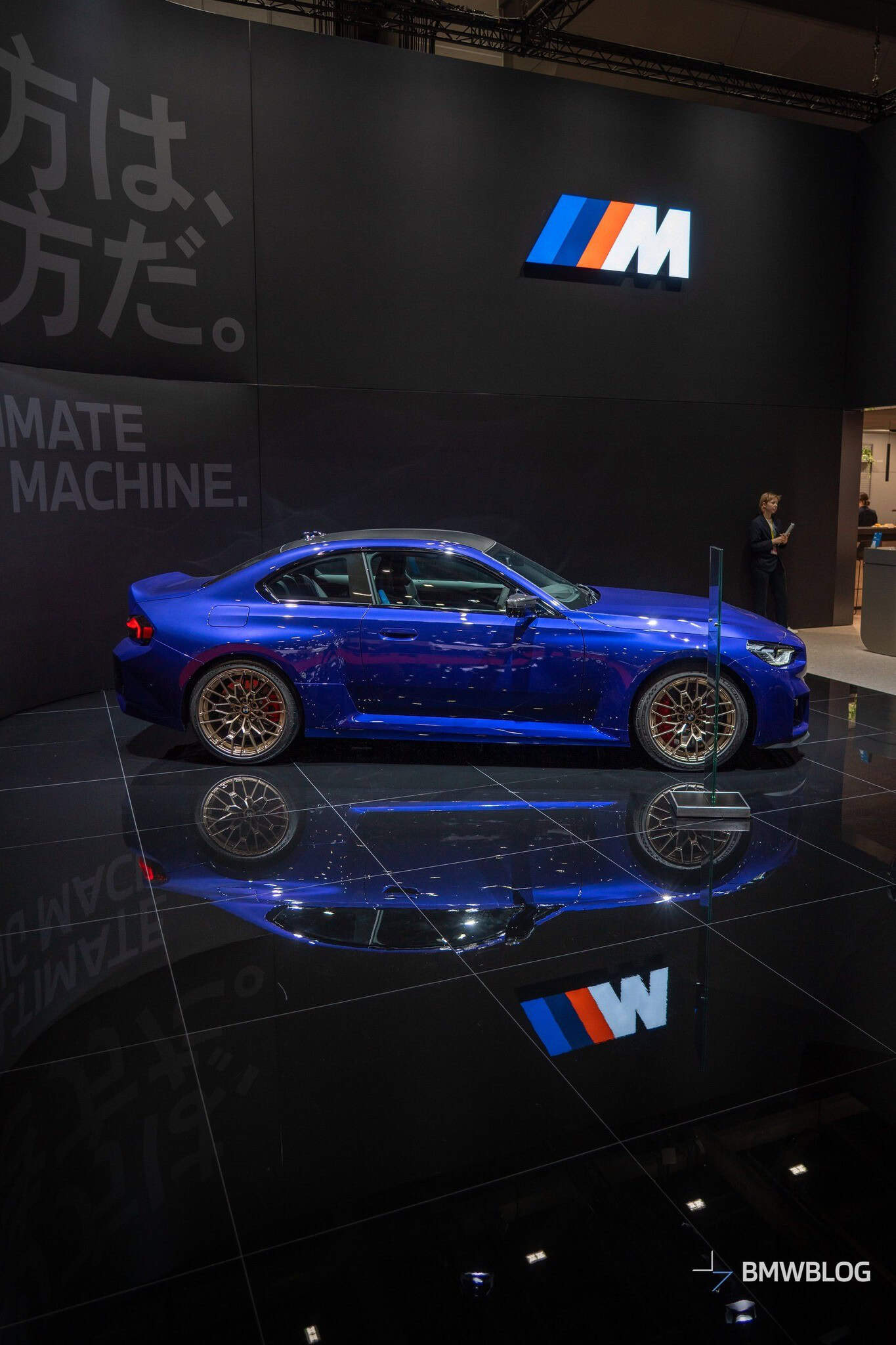 At the 2025 Japan Mobility Show, BMW displays the M2 CS in Individual Velvet Blue, arguably the flashiest of the available finishes. Those seeking something more subdued can choose from Sapphire Black, Brooklyn Grey, or M Portimao Blue. Regardless of color, all cars come with these striking matte Gold Bronze forged wheels.