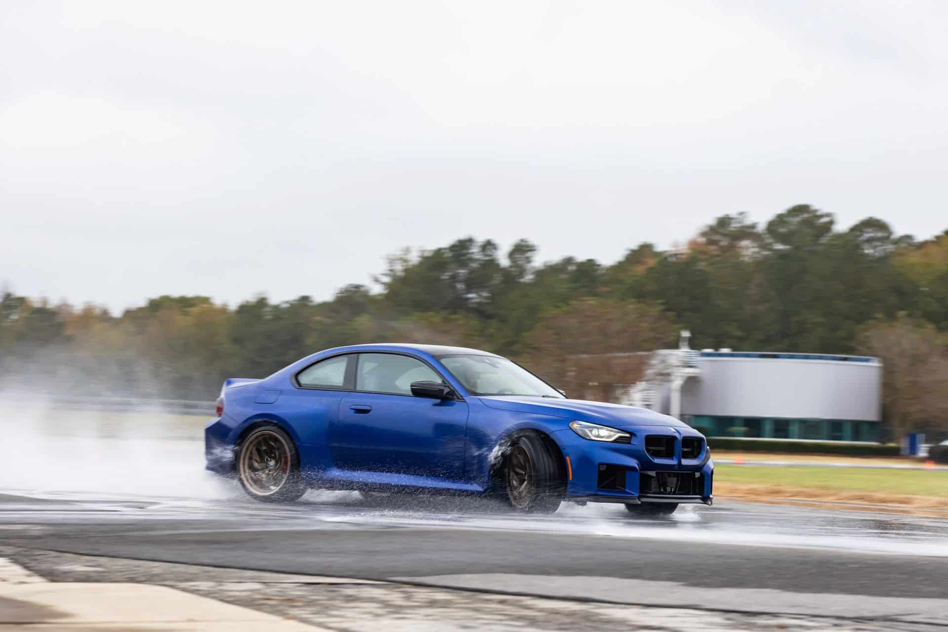 When the rain finally slowed, I turned off DSC completely and headed for the autocross course. The surface was still slick, but this was the M2 CS at its best. It rotated more eagerly now, the rear following the throttle with just the right amount of slip. Through the tighter corners, I could feel the front tires bite and the car pivot neatly around them — precise, but never clinical.