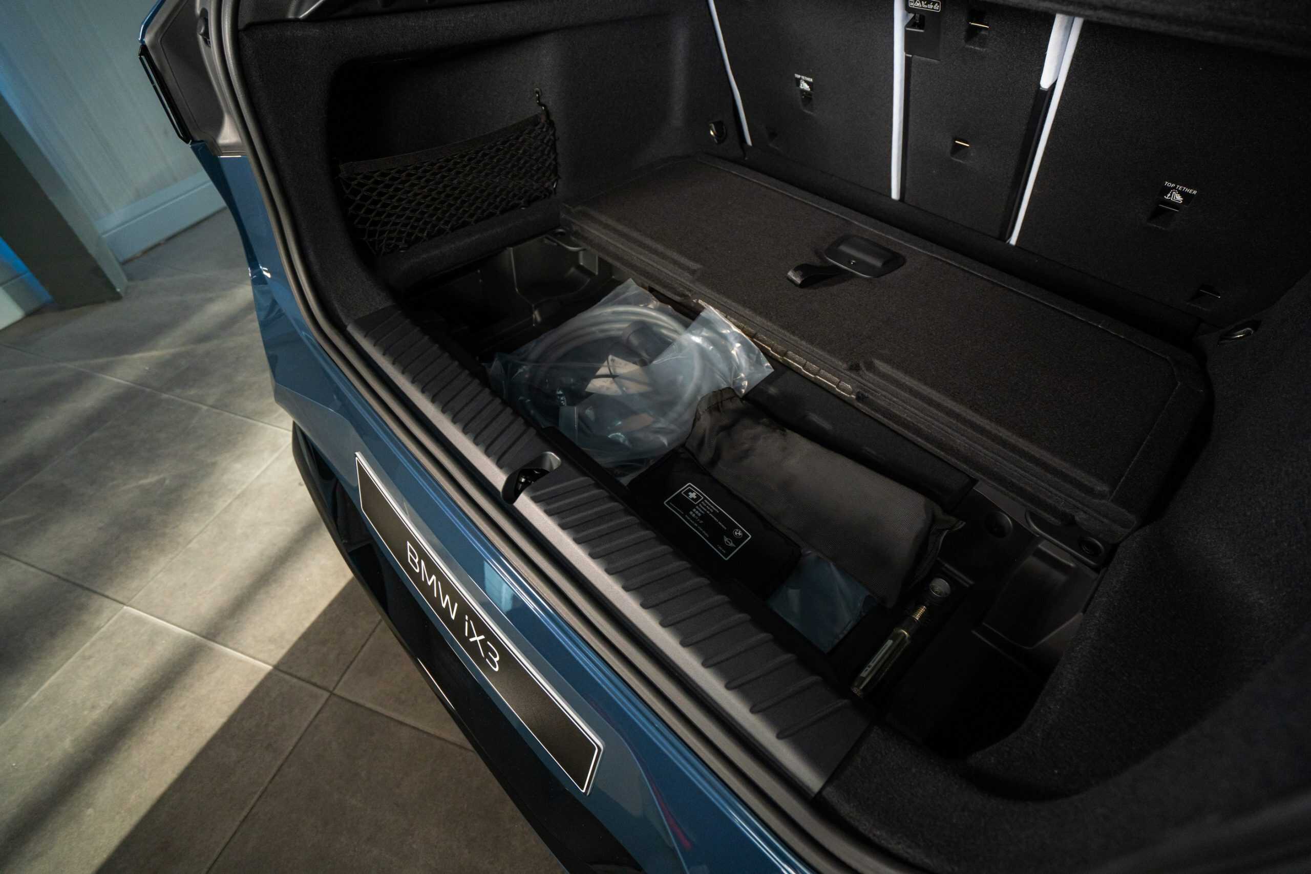 At the back, the traditional cargo area offers 520 liters with the rear seats up. Fold them down, and the capacity increases to 1,750 liters. If you need even more, an optional electrically operated trailer tow hitch is available. This iX3 has it, and in the 50 xDrive launch model, it’s rated to tow a maximum of 2,000 kilograms. Logic suggests that future “40” models with less powerful motors are unlikely to match that figure.