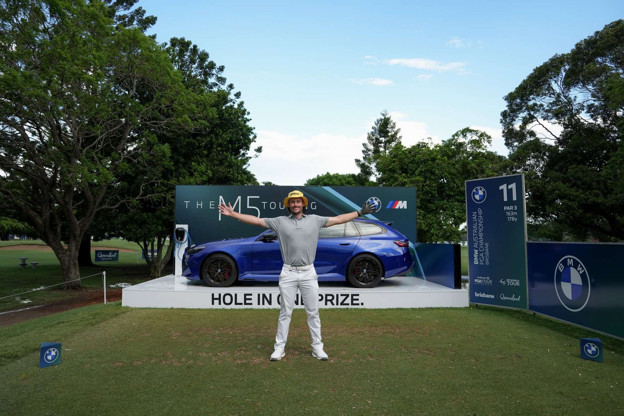 It was certainly a great day on the job for Daniel Gale at the Royal Queensland Golf Club in Brisbane. During the inaugural round of the BMW Australian PGA Championship, the pro golfer scored a perfect shot and won the Hole-in-One prize. The 29-year-old local golfer grabbed the keys to an M5 Touring, a car big enough to carry all his golf equipment.