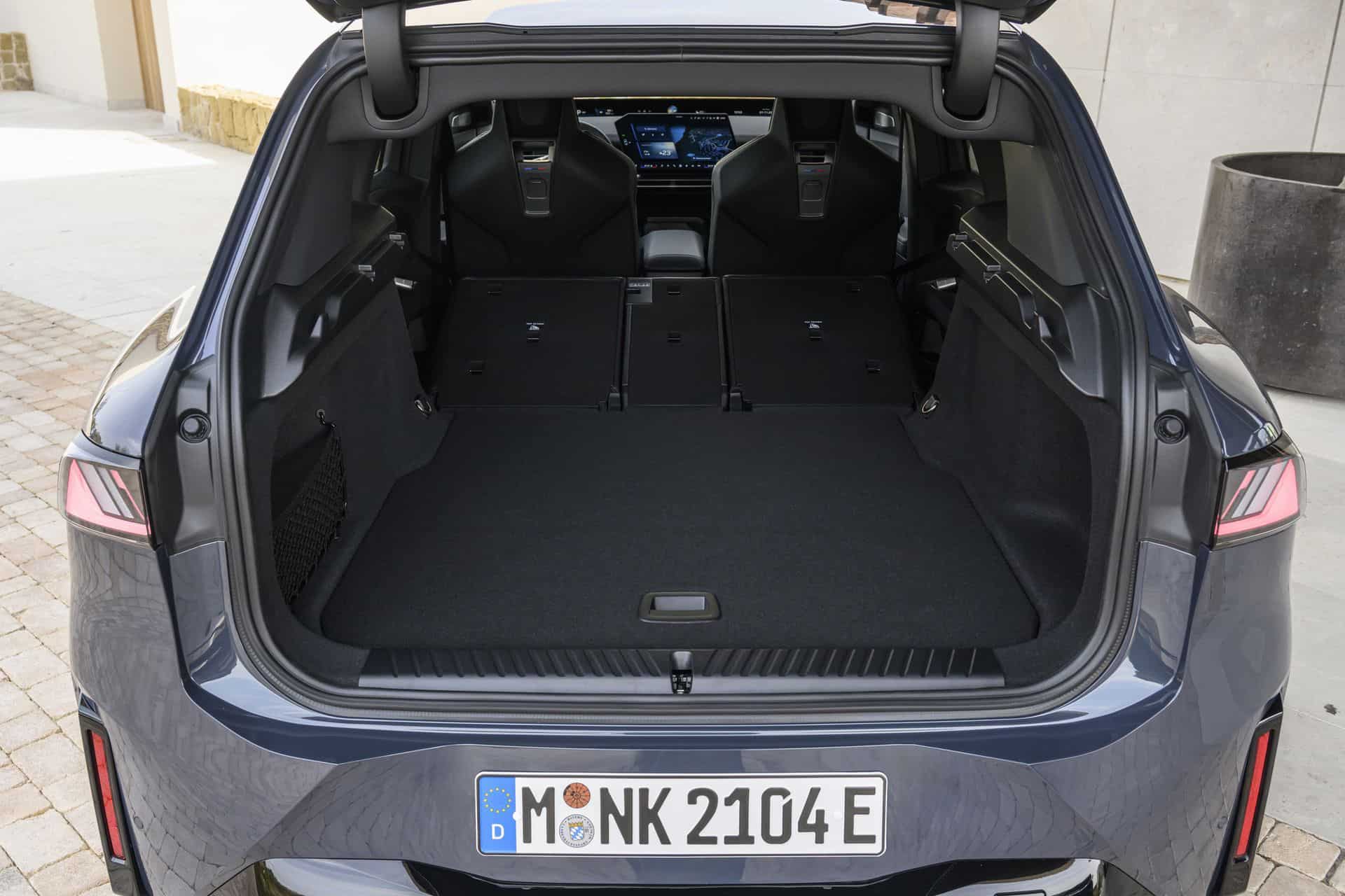 Rear space is one of the iX3’s surprises. Because it’s an EV-first platform with no transmission tunnel, the rear floor is flat, and knee room and headroom are almost on par with a BMW X5. We tested three adults across the back — all tall — and the iX3 handled it surprisingly well. Shoulder room was tight, as expected, but two adults and a child will have plenty of space. Cargo volume is generous, with wide access and a deep trunk floor. There’s also a 17-liter frunk that’s designed primarily for storing cables and accessories.