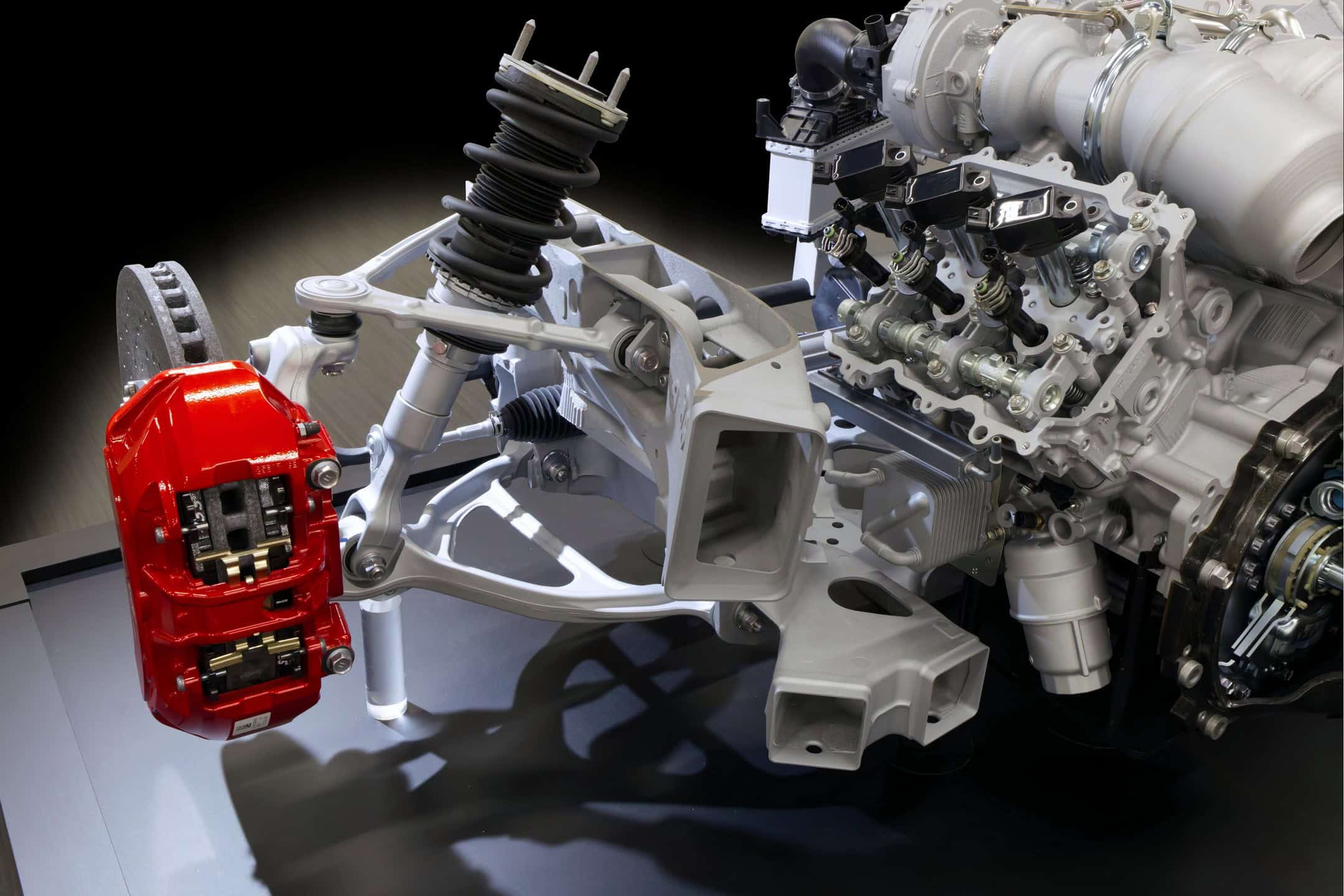Those projected numbers factor in an electric motor mounted within the transaxle. Yes, the GR GT is a hybrid, an especially exciting one. Everything goes to the rear wheels, and the V8 feeds an all-new eight-speed automatic transmission that works with a mechanical limited-slip differential.