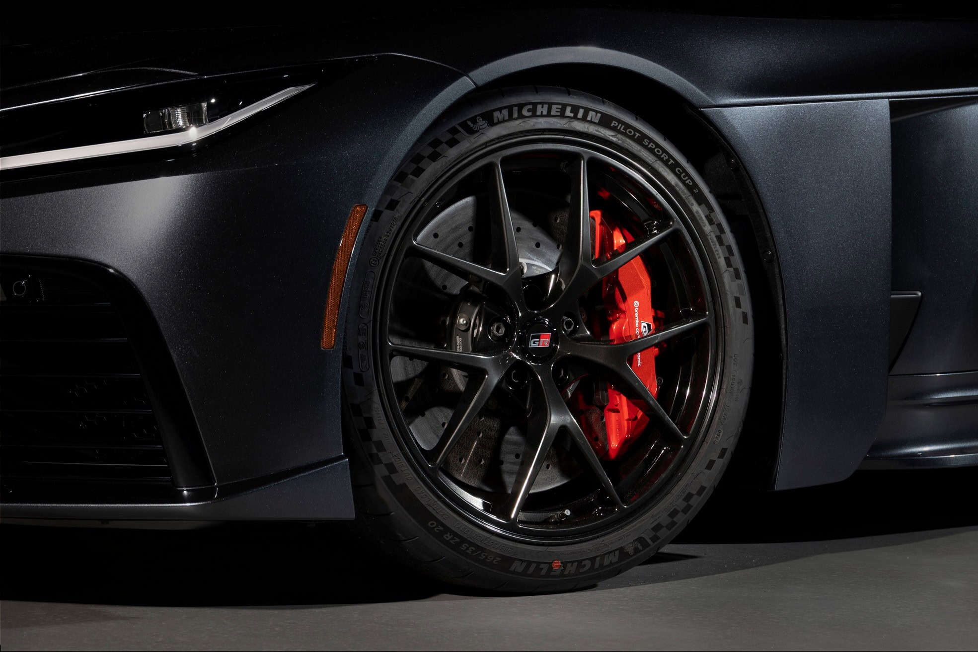 Both axles use 20-inch wheels wrapped in bespoke Michelin Pilot Sport Cup 2 tires and paired with Brembo carbon-ceramic brakes. A double-wishbone suspension, front and rear, was developed specifically for the GR GT. The stability control system will be configurable, allowing drivers to dial in the car’s preferred level of tail-happy behavior.