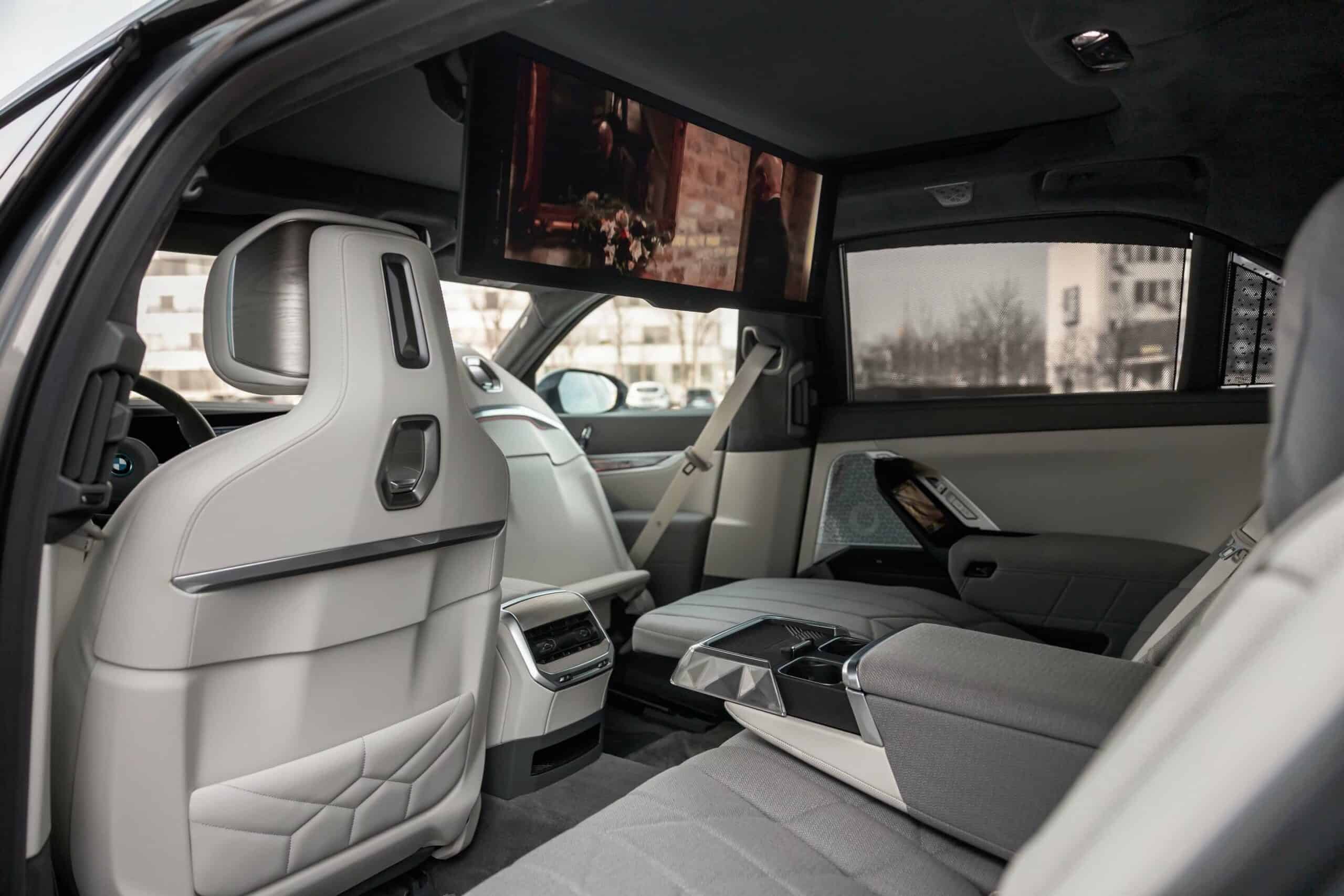 As with all BMW 7 Series models, the i7’s interior falls just shy of Rolls-Royce decadence. For those focused more on passengers, the $7,250 Rear Executive Lounge Seating Package for the xDrive60 and M70 is where you want to look. The high-dollar package includes opulent additions like the rear theater screen and reclining rear seats. The 7 Series has more interior options than any other model, and the 2026 BMW i7 is no different. Unlike the gas-powered 7er, Merino leather comes standard, and $5,450 (or more in some cases) gets you Full leather. Trim choices run the gamut from carbon fiber and piano black to open-pore wood. Most creature comforts are standard, too, like heated/ventilated front seats, a panoramic moonroof, and a Bowers & Wilkins sound system.