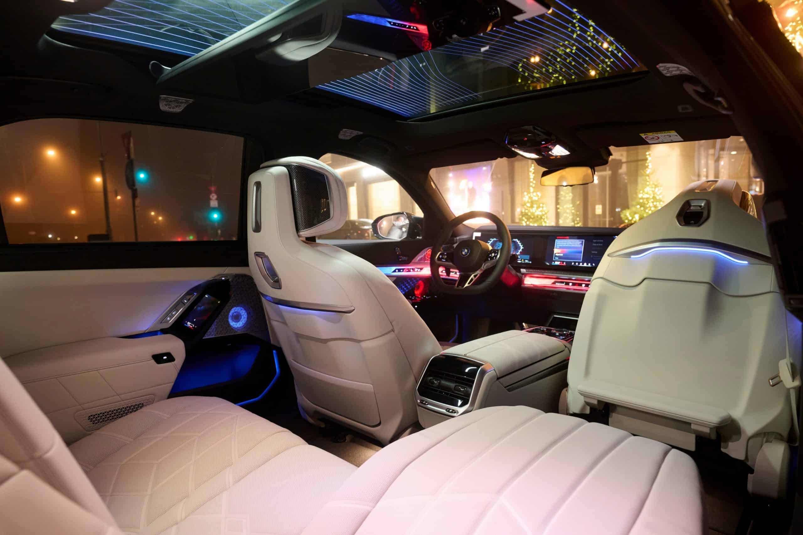 Inside, buyers can choose between Merino Smoke White or Amaro Brown leather upholstery. To sweeten the deal, the 7 Series comes standard with automatic doors and a massive 31.3-inch screen that folds down from the ceiling. The supersized display is no longer exclusive to the G70, having already trickled down to the long-wheelbase 5 Series. The electrically operated doors won’t remain a 7 Series-only feature for long either, as we’re hearing they’re slated to arrive on the second-generation X7 in 2027.