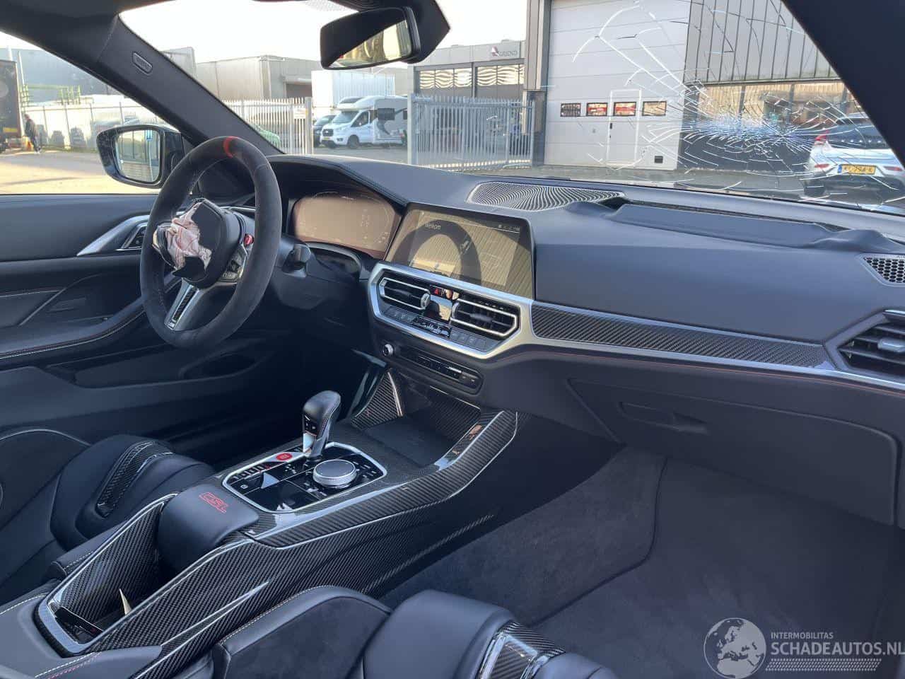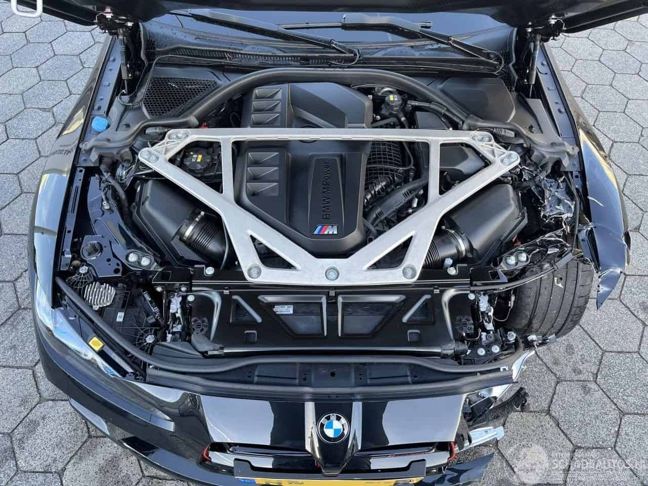 First registered in September 2022, this Sapphire Black Metallic M4 CSL covered just 10,606 kilometers (6,590 miles) before the crash. While the engine still runs, the car is in serious need of TLC. A sizable portion of the front bumper and a headlight are missing, and both the dented hood and fender will need replacing.