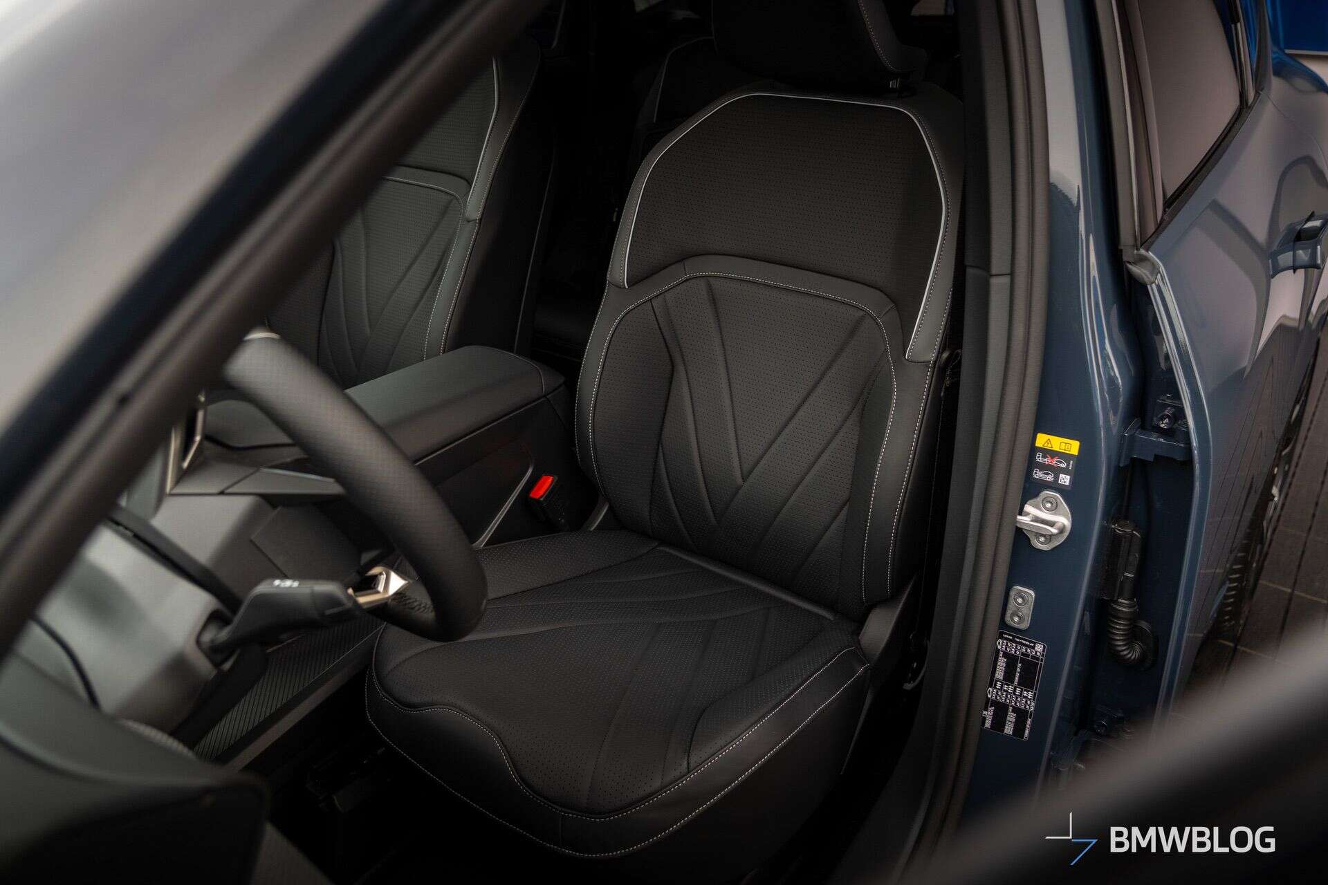 We were allowed to peek inside their cabins, where the optional Sport steering wheel was the shared element. BMW chose Castanea artificial leather upholstery for one iX3 and black Individual genuine leather for the other. More daring customers can opt for a white interior and even match it with a white steering wheel.