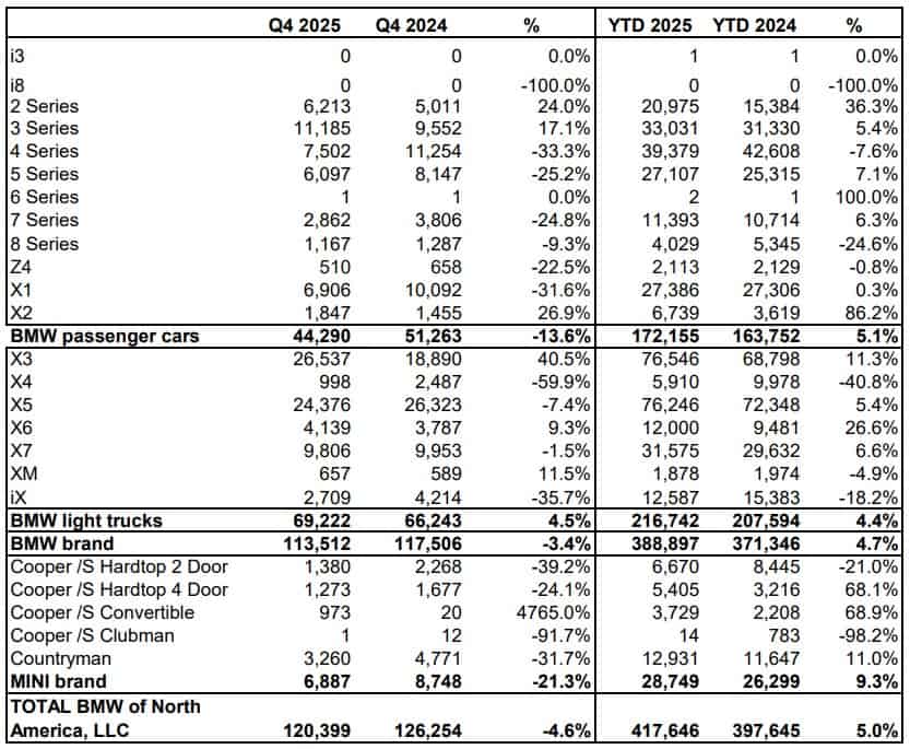 At the other end of the rankings, you’ll find the usual suspects. The XM finished dead last, with only 1,878 units sold, a 4.9% decline from the previous year. The Z4 ended slightly ahead at 2,113 roadsters, or 0.8% fewer than in 2024. It’s worth noting that 2025 was the two-seat convertible’s last full year on sale. Production ends this April, with the Final Edition marking the car’s impending demise.