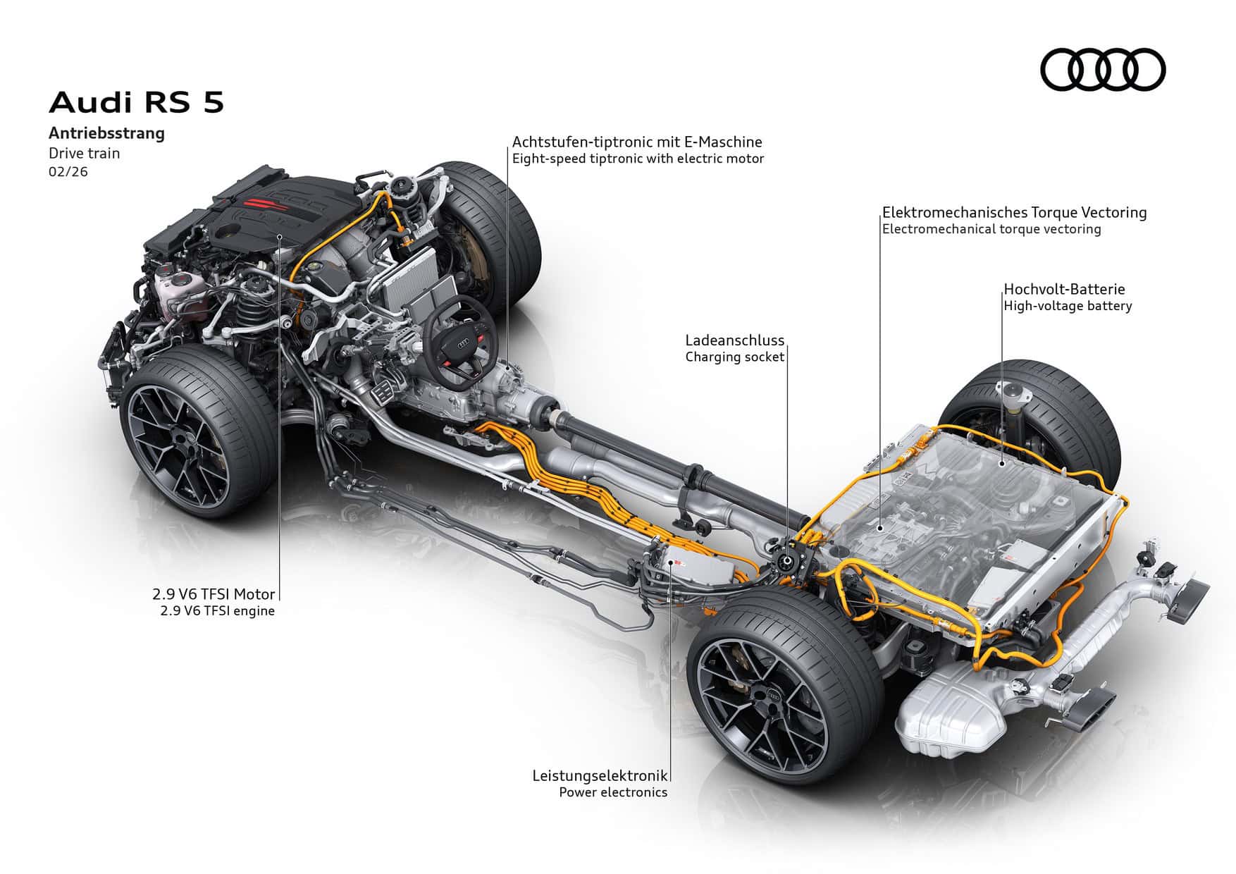 - The new Audi RS5 goes the plug-in hybrid route with far more power but also a considerable amount of extra weight.