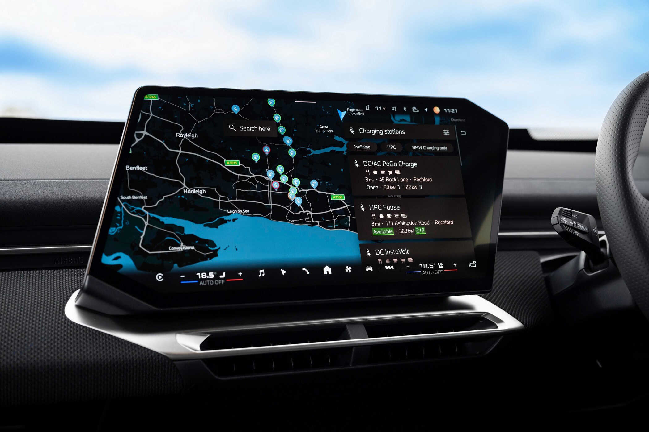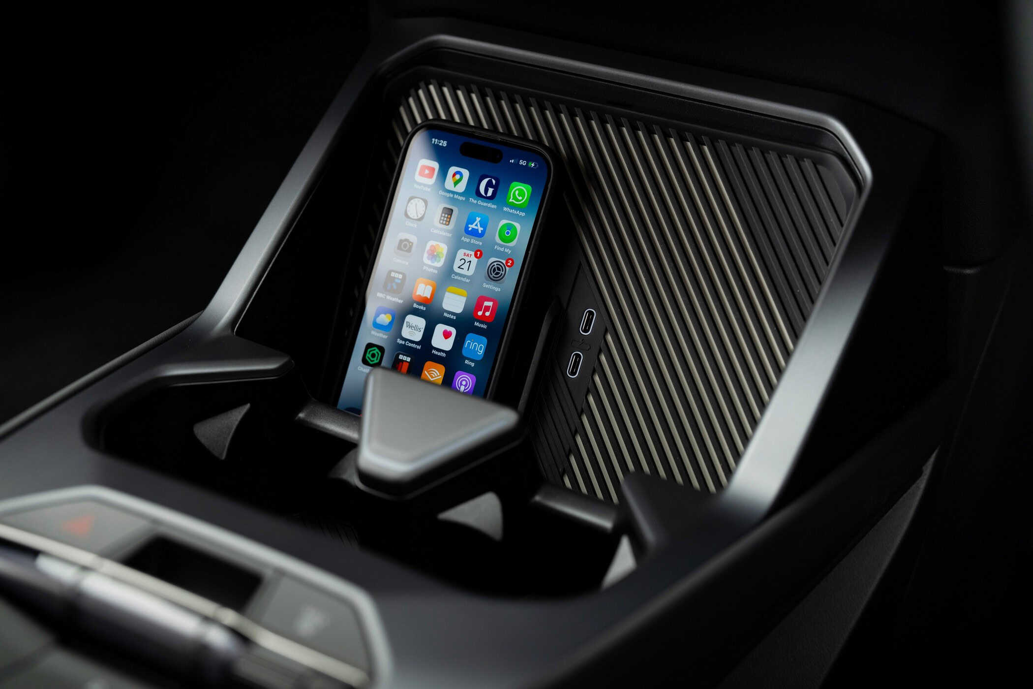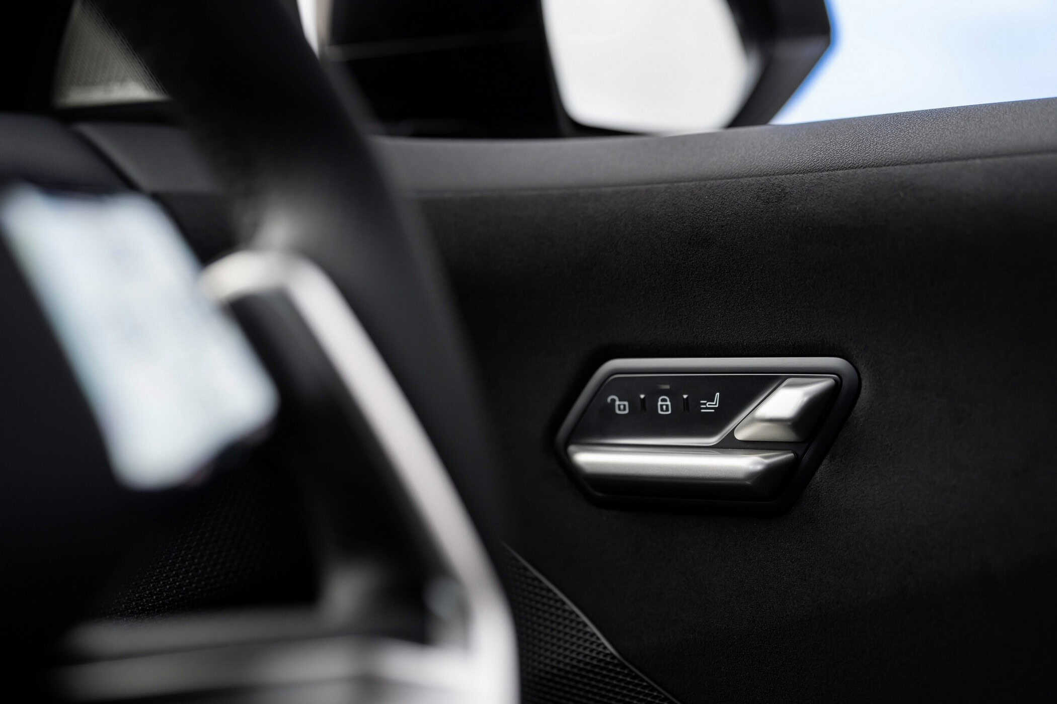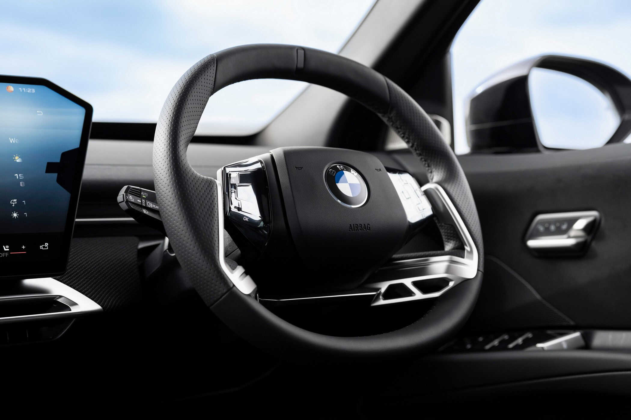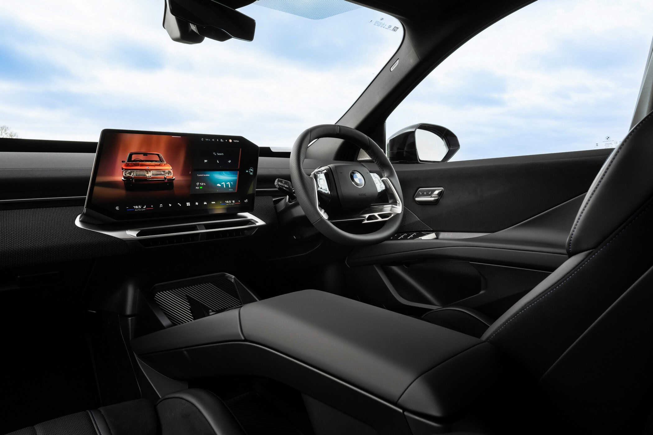 We’re already familiar with the new M steering wheel, and not just from the iX3. When the M5 Touring facelift was spotted last week, the super wagon prototype appeared to feature the same design, complete with an M logo atop the airbag cover. It’s heated (£250) on this iX3, which also gets M Sport seats and matching seatbelts.