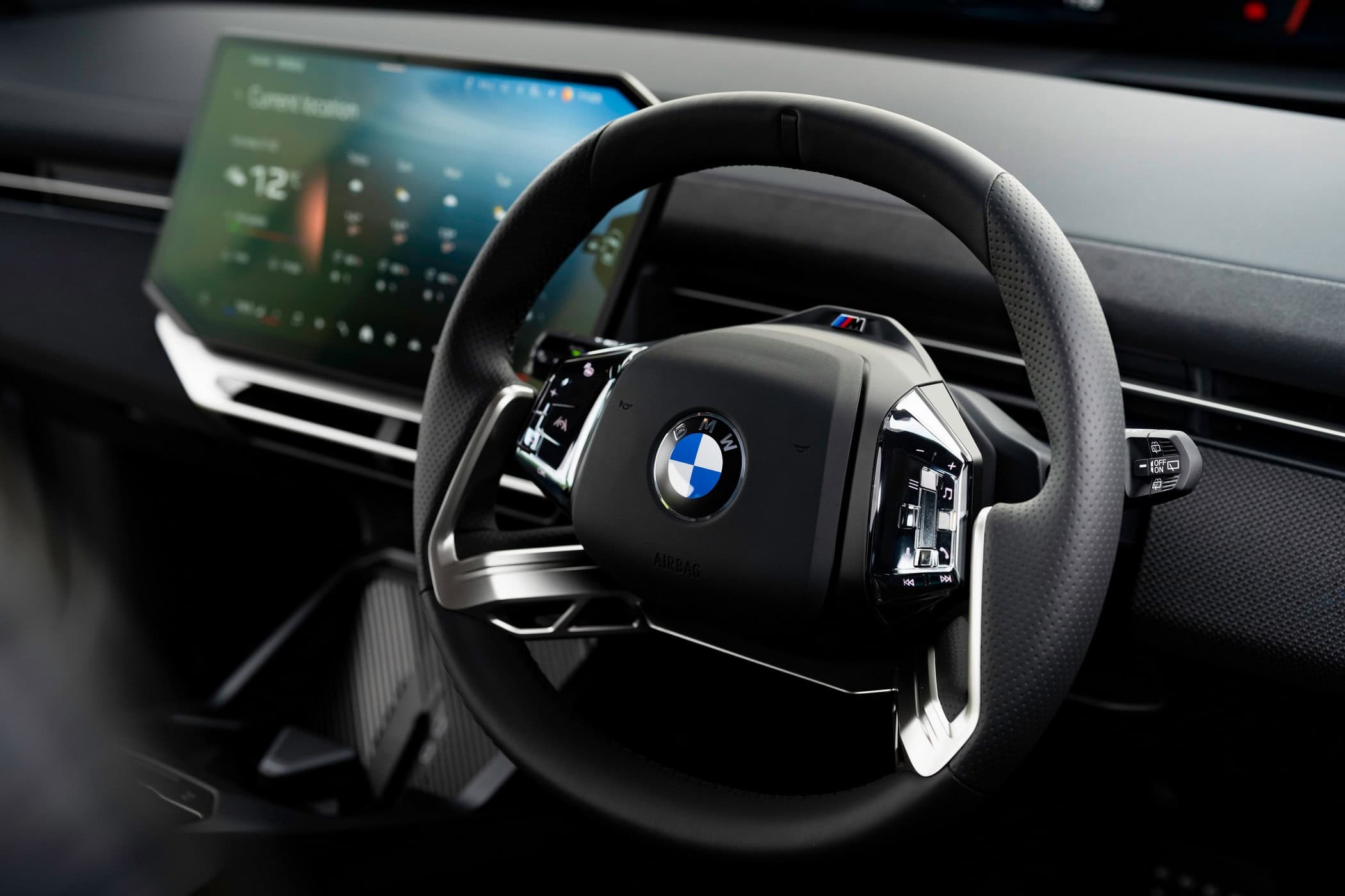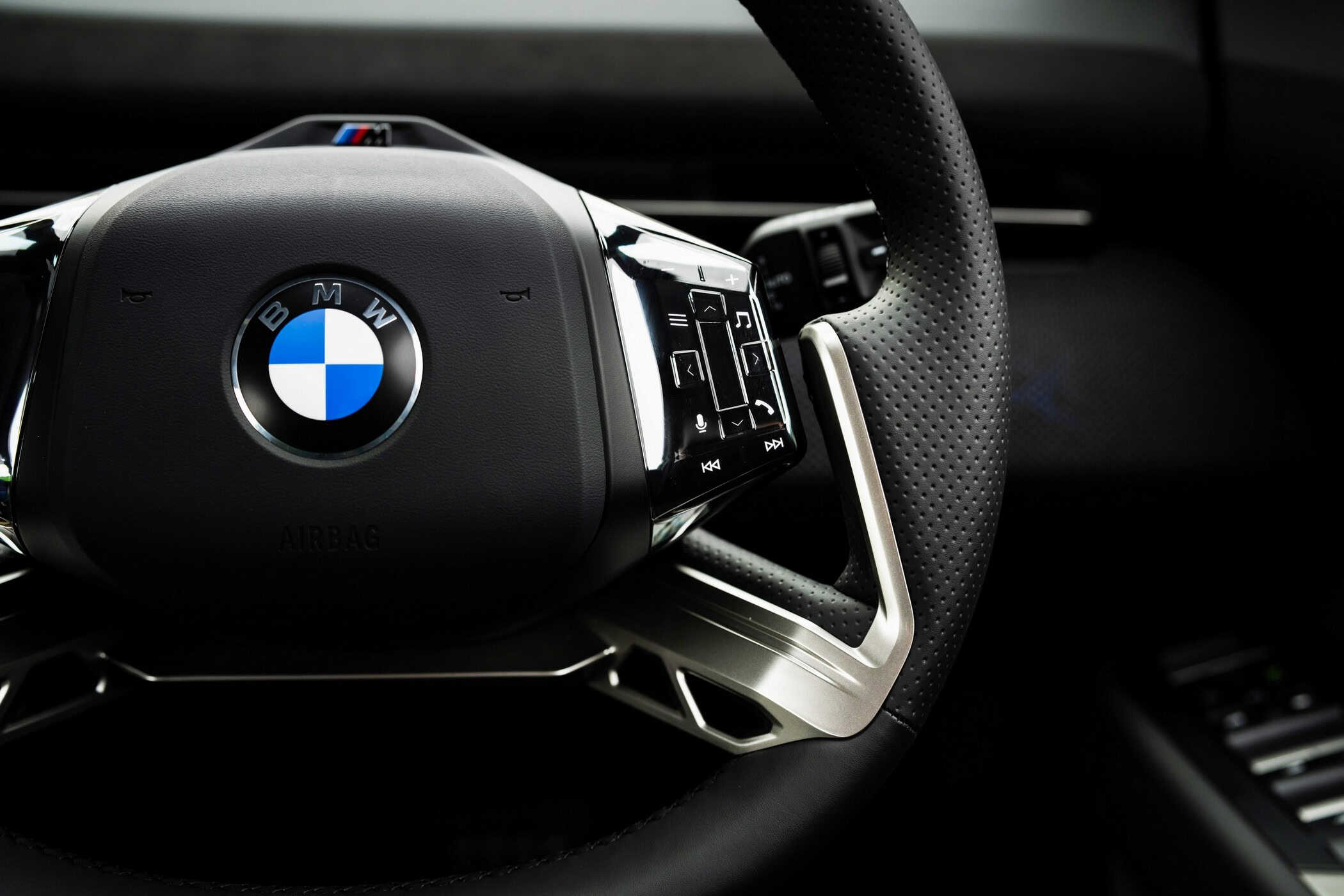 Inside, this iX3 plays it safe by skipping the Digital White seat upholstery and steering wheel. Instead, it features a black M cabin trimmed in a combination of Veganza and M PerformTex. The former is essentially artificial leather, while the latter is a velour-like material made from more sustainable sources.