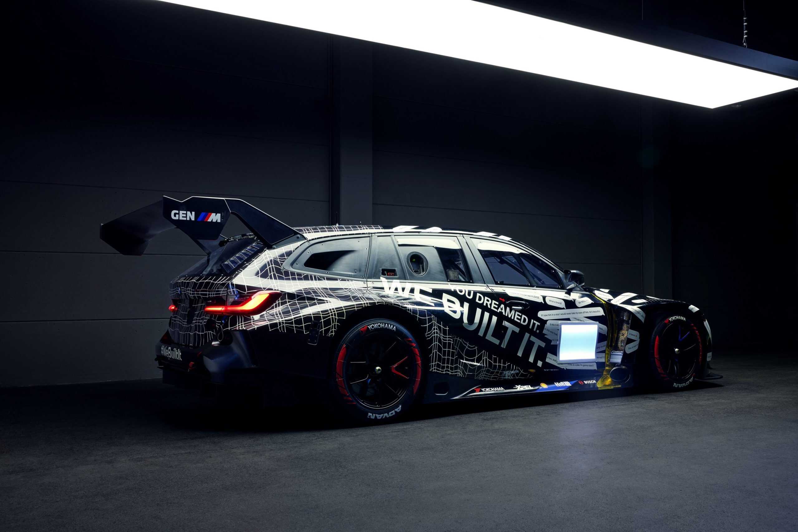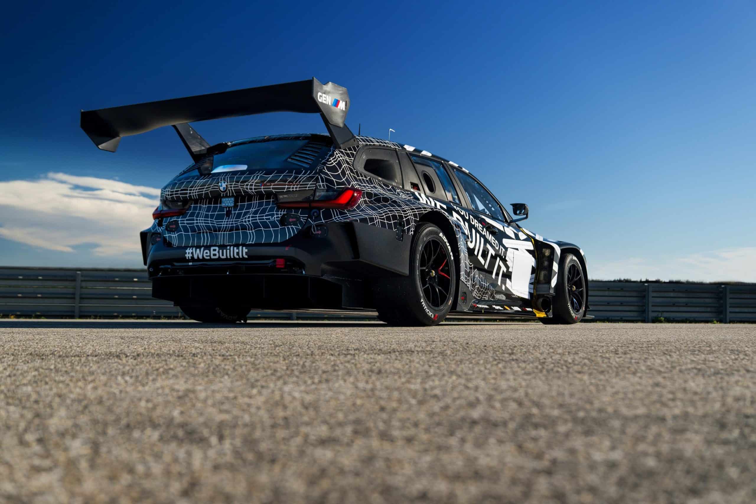 Using the M4 GT3 EVO as the basis allowed BMW M Motorsport to accelerate development. However, it still needed to develop a new body in carbon fiber-reinforced plastic (CFRP). That also meant new windows and faux rear doors since there’s obviously no need for them. Additionally, the front doors are shorter, and the rear wing extends further back to improve aerodynamics and compensate for the wagon shape.