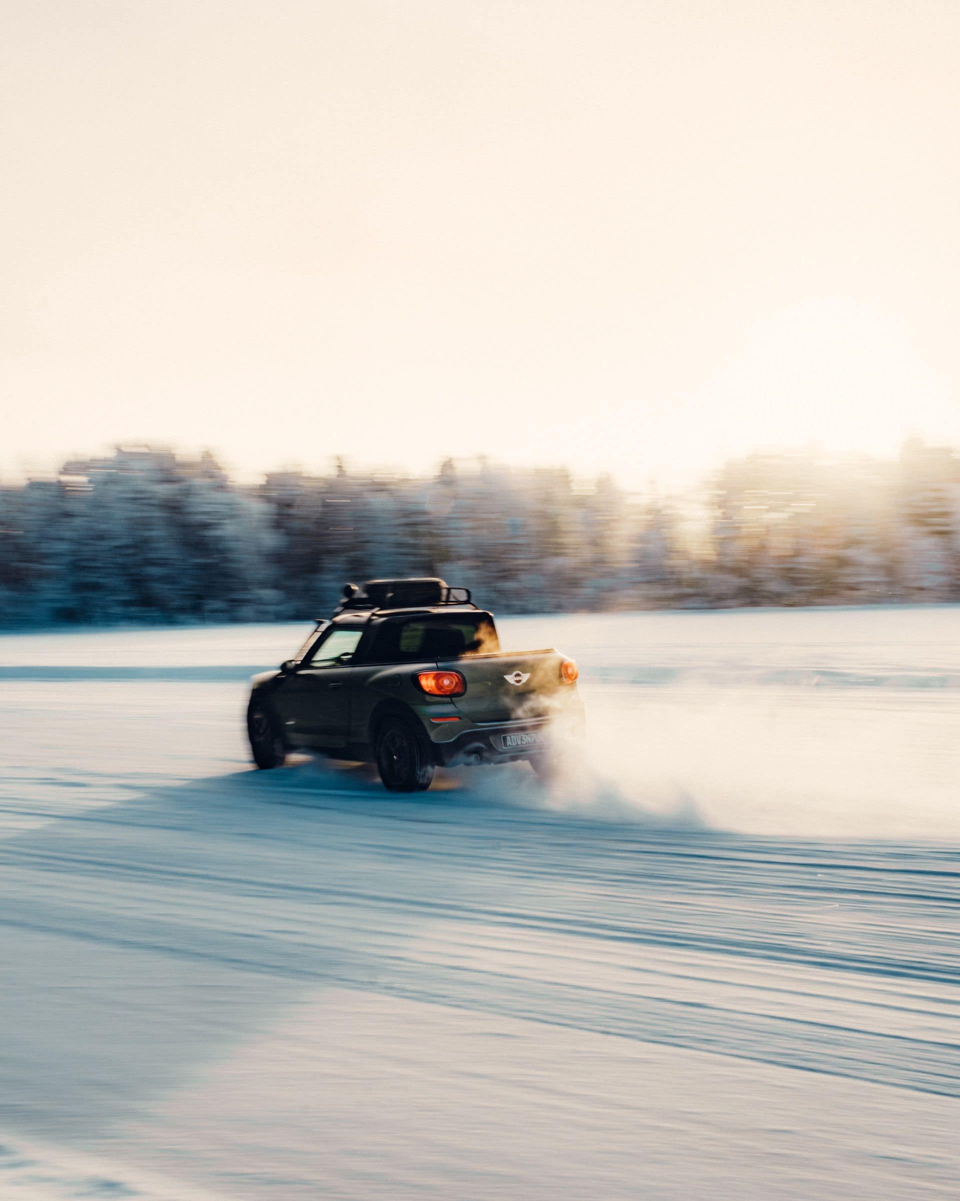 BMW Sweden and MINI Classic arranged a full session on a frozen lake, which is the kind of opportunity you don’t walk away from. Even if it means changing three planes to get to Northern Europe. Ice driving has a particular quality where all the physical feedback is amplified. Grip comes and goes in a way that feels almost liquid. You feel the front end searching, feel the rear moving before the numbers would ever tell you it was moving. In a rear-wheel-drive car on ice, you’re always managing a slide. In the Paceman Adventure, with ALL4 and 184 horsepower through a manual gearbox, you were choosing when to invoke the slide and how far to take it.