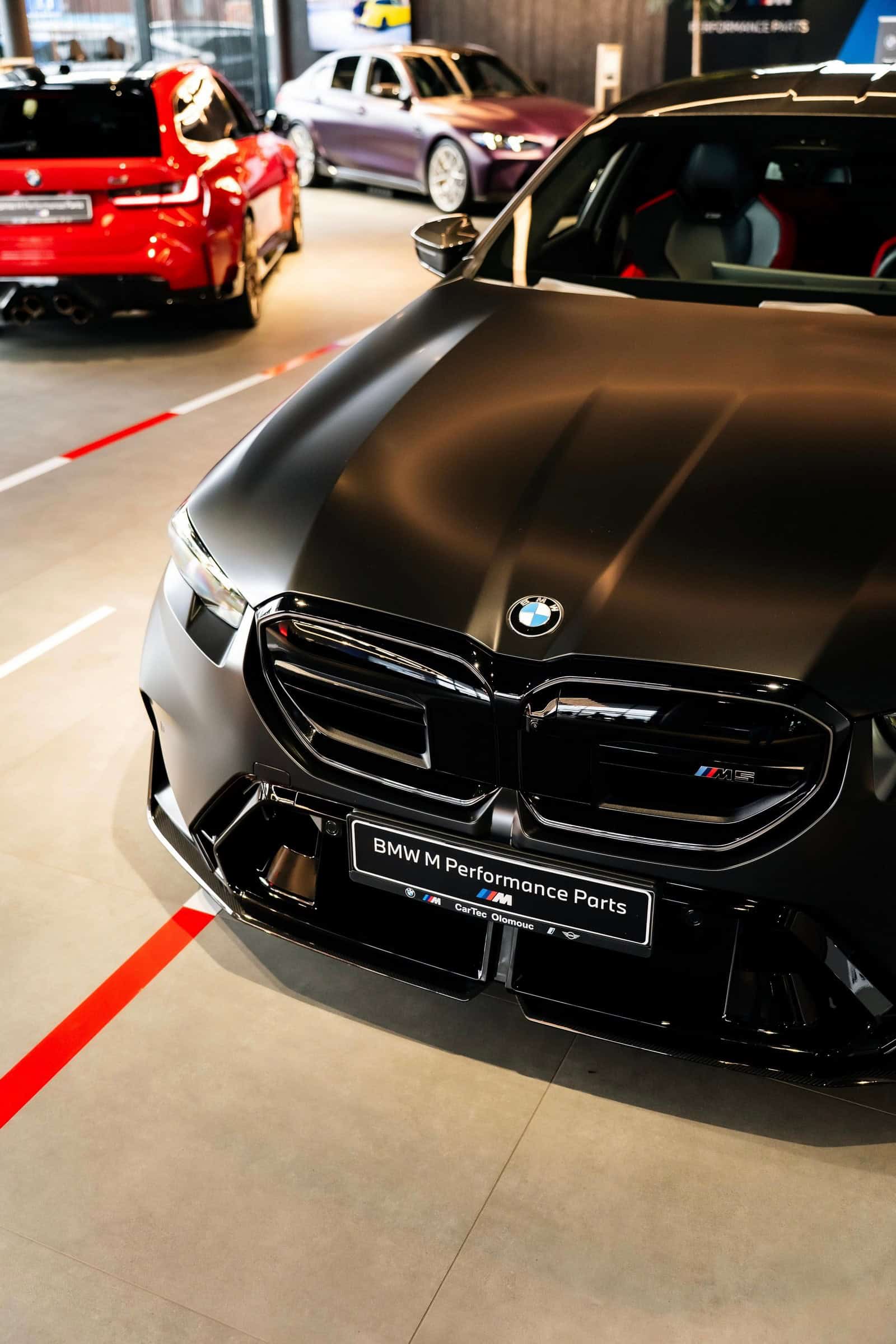 Among the many M cars, there’s also an intruder hiding in plain sight. Eagle-eyed readers will spot a 5 Series in 540d guise with a six-cylinder diesel engine. However, even that isn’t an ordinary car, as BMW has equipped it with carbon-fiber body add-ons and 21-inch M Performance wheels.