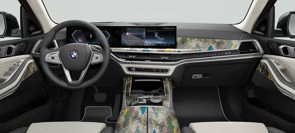 That extra fee offers more than just a dual-tone paint job. Echoing the Nishiki Lounge concept, this limited-run X7 comes with exclusive trim elements never before seen on a production BMW. Buyers can choose from 12 traditional patterns, each incorporating foil decoration across the dashboard, center console, and door panels.